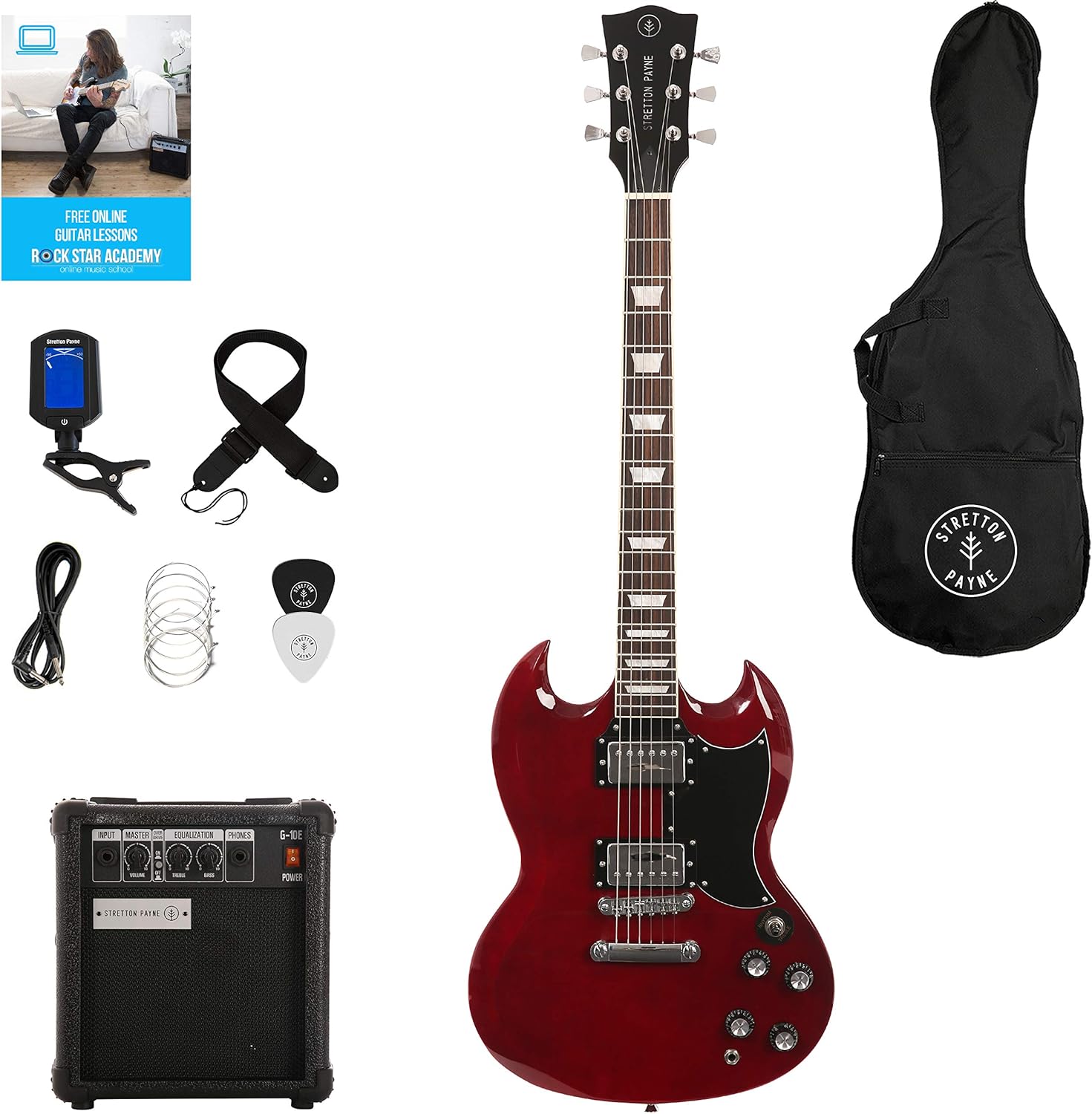 - Stretton Payne Sg Electric Guitar With Practice Amplifier Padded Bag Strap Lead Plectrum Tuner Spare Strings Wine Red Amazon Co Uk Musical Instruments