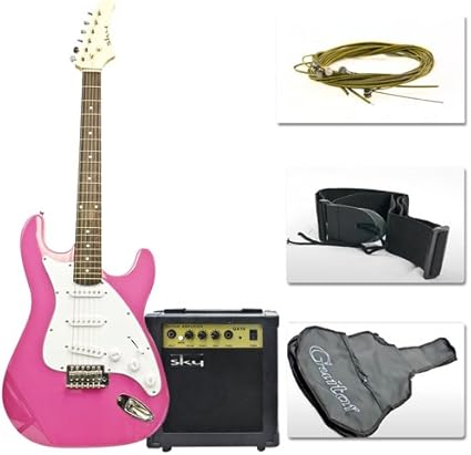 - Amazon Com Best Choice Products Combo 39 Pink Electric Guitar With 10 Watt Amp Guitar Case More Accessories Musical Instruments