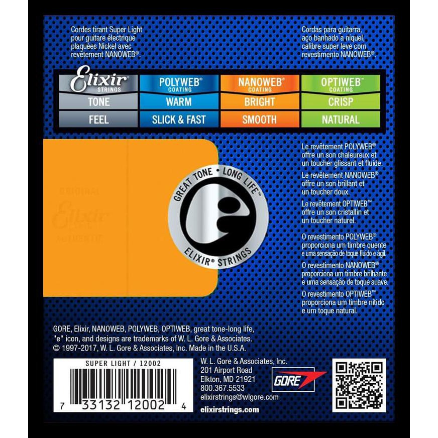 - Elixir Strings 12002 Nanoweb Electric Guitar Strings 009 042 Super Light Sweetwater