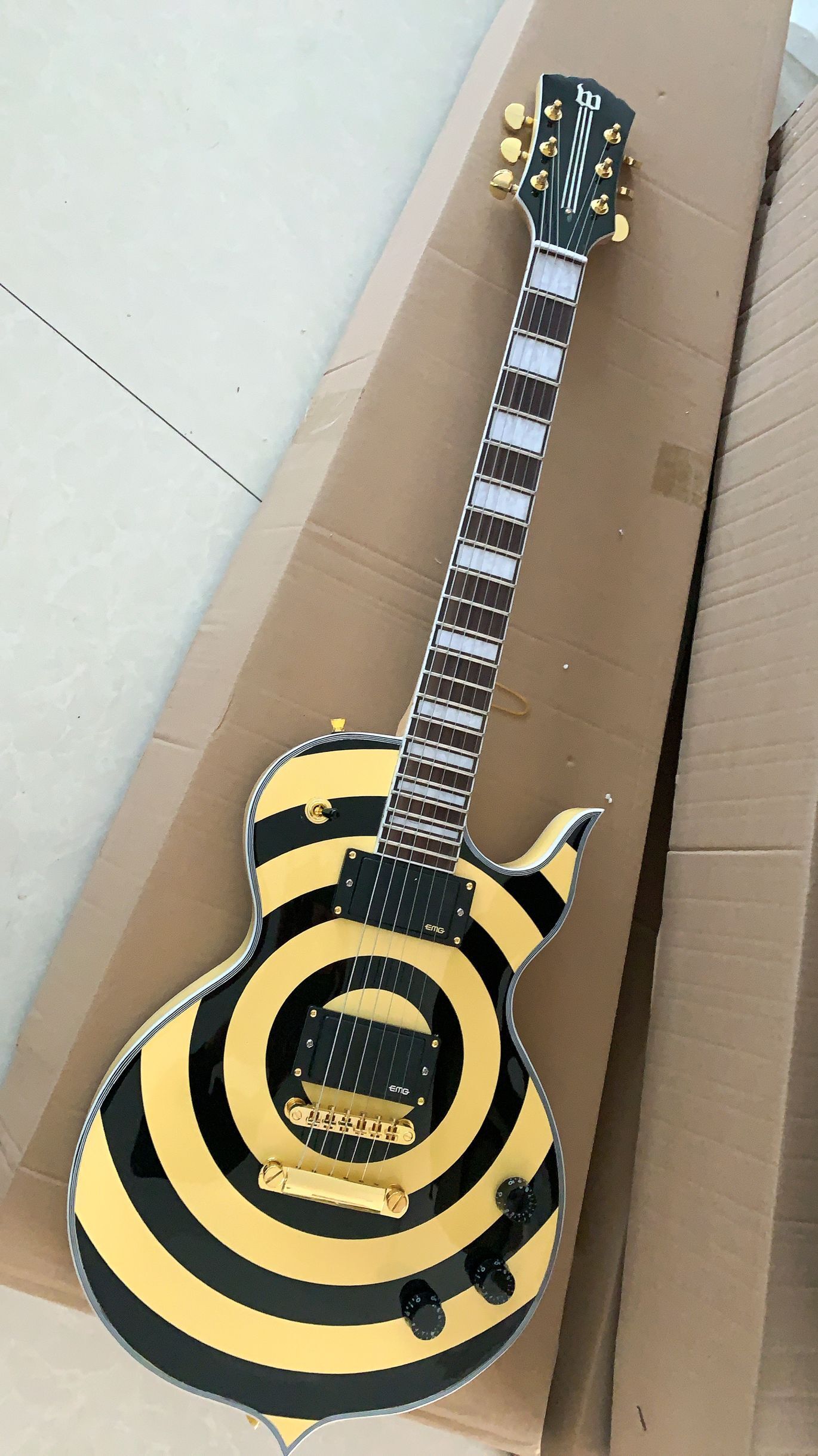 - Custom Zakk Wylde Audio Odin Grail Gangrene Yellow Cream Black Bullseye Electric Guitar Large Block Inlay Gold Hardware Copy Emg Pickups Electric Guitar Set Electric Guitar Amps From Jugg Guitar 117 09 Dhgate Com
