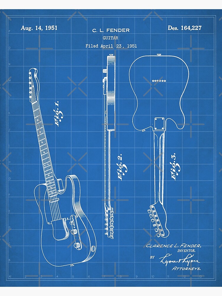 - Fender Guitar Patent Fender Electric Guitar Art Blueprint Greeting Card By Patentpress Redbubble
