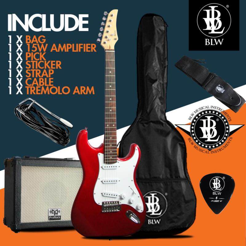 - Blw Stratocaster Style Electric Guitar Starter Beginner Pack Comes With 15 Watt Prorock Amplifier Bag Cable