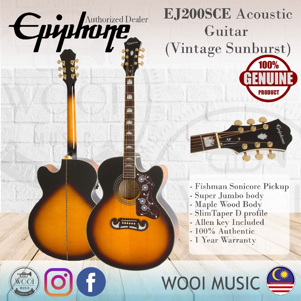 - Epiphone Ej 200sce Acoustic Electric Guitar Jumbo Size Ej200ce Vintage Sunburst Shopee Malaysia