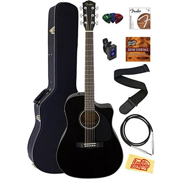 - Fender Cd 60sce Dreadnought Acoustic Electric Guitar Black Bundle With Hard Case Tuner Strap Strings Picks Instructional Dvd Polishing Cloth Walmart Com Walmart Com