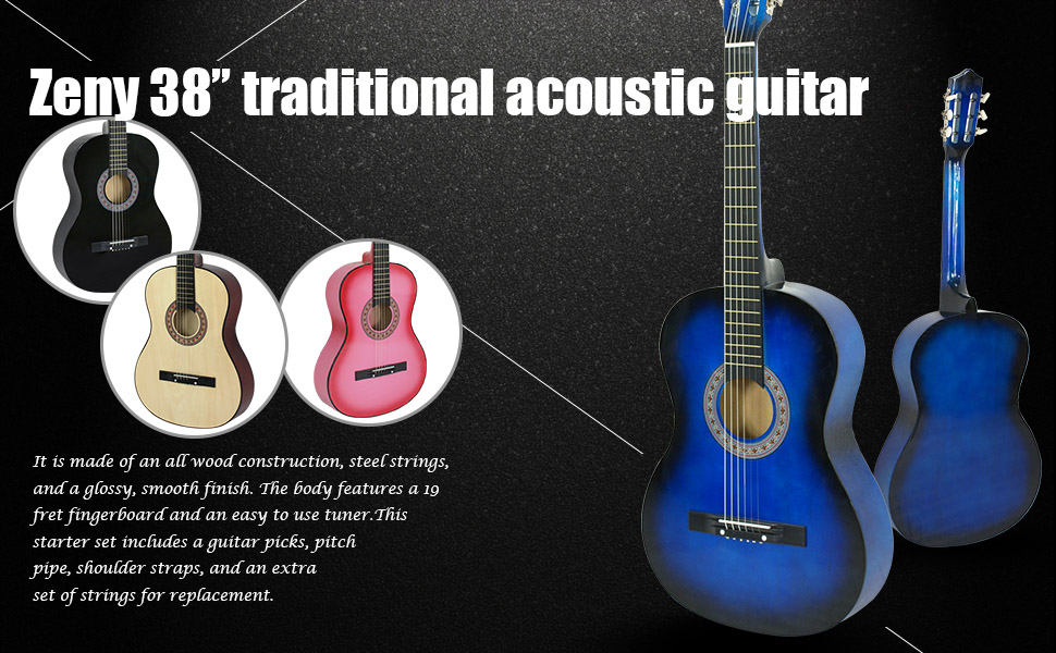 - Zeny 38 New Beginners Acoustic Guitar With Guitar