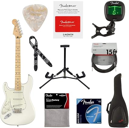 - Amazon Com Fender Player Stratocaster Left Handed Electric Guitar 22 Frets Modern C Shape And Maple Neck Maple Fingerboard Gloss Polyester Polar White With 9 Pack Accessory Bundle Musical Instruments