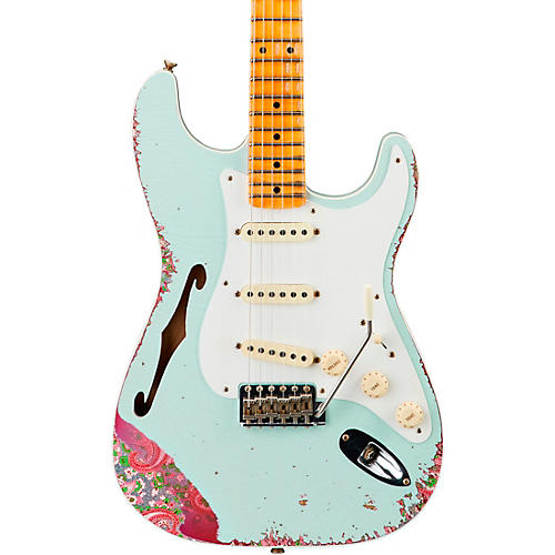 - Fender Custom Shop 1956 Heavy Relic Thinline Stratocaster Electric Guitar Aged Sonic Blue Over Pink Paisley Musician S Friend