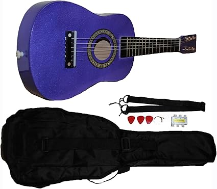 - Amazon Com Mini Kids Acoustic Toy Guitar Kit Gig Bag Picks Strap Tuner Glitter Purple Musical Instruments